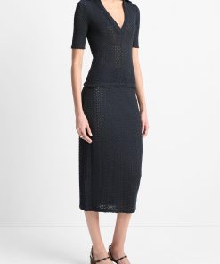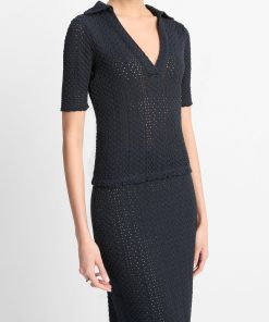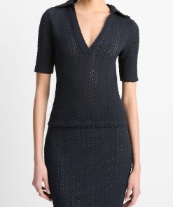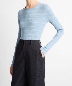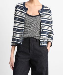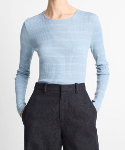 Vince Women’s Textured Micro-stripe Italian Cotton-blend Sweater Tank | Coastal Blue & Oat Shell