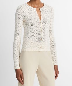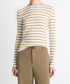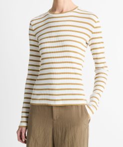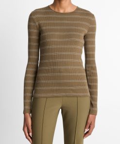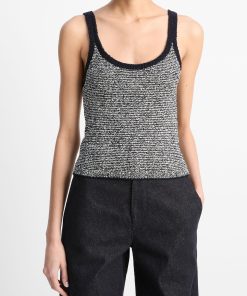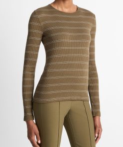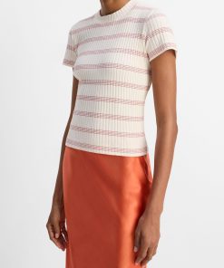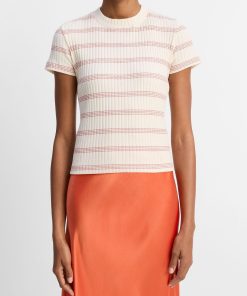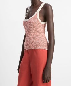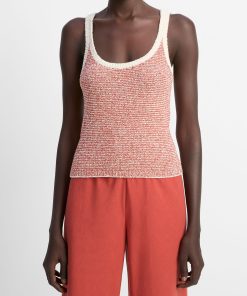 Vince Women’s Textured Micro-stripe Italian Cotton-blend Sweater Tank | Oat Shell & Brick Rose