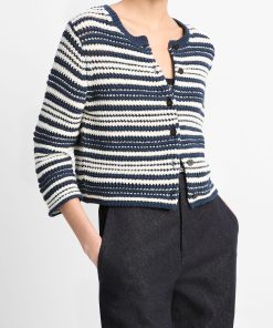 Vince Women’s Ticking Stripe Linen-cotton Low-rise Crop Flare Trouser | Iris Slate & Off White