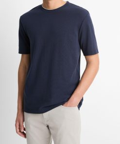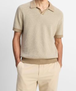 Vince Men’s Colorblocked Feed-stripe Cotton-cashmere Johnny-collar Sweater | Canyon & Horchata
