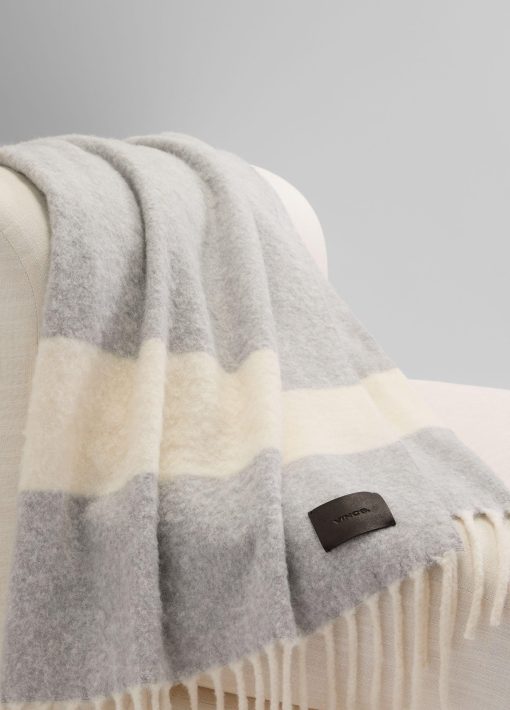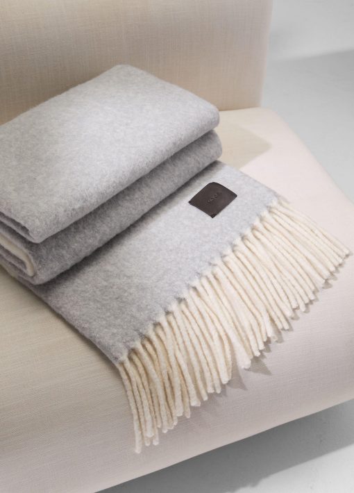 Crafted of a blend featuring alpaca, wool and silk in a brushed finish, this cozy throw adds a quietly luxurious accent in any room.