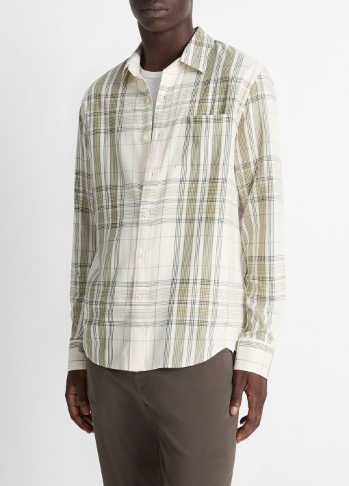 This classic button-up is crafted from a cotton-blend twill for lightweight comfort throughout the year and enlivened with a bold plaid that harmonizes the colors of the season.