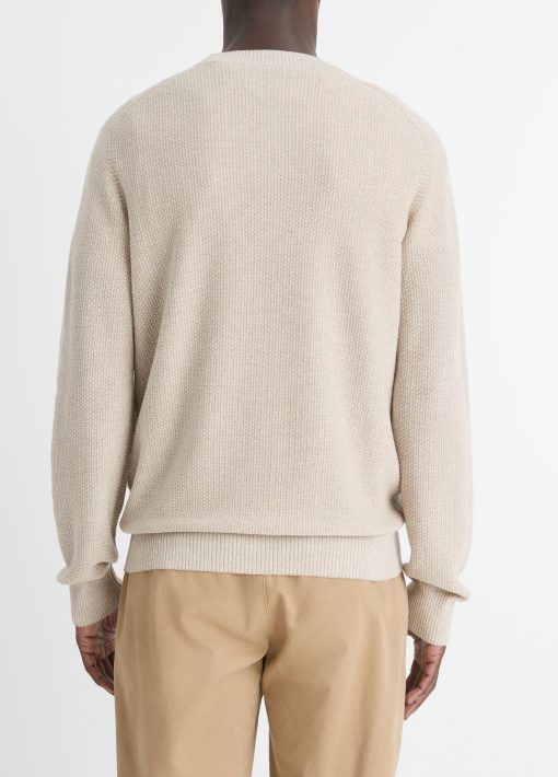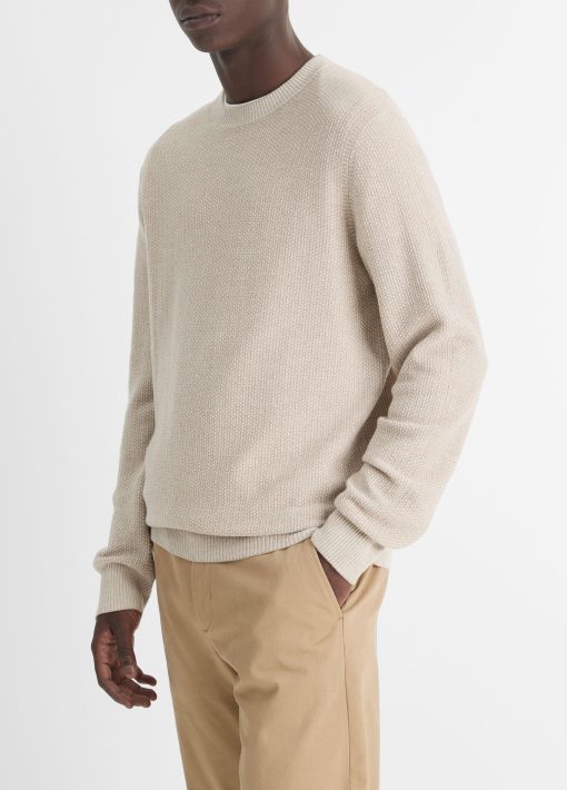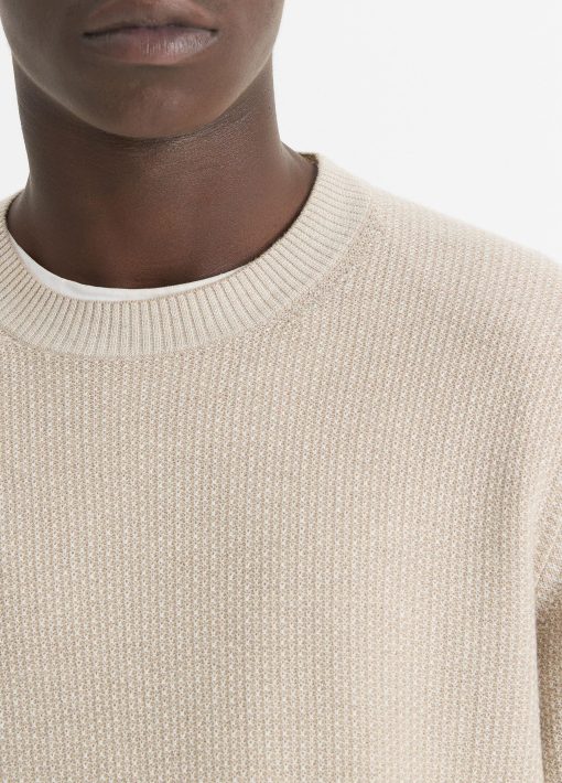 Vince Men’s Geo-jacquard Wool-blend Crew Neck Sweater | British Khaki & Classic Cream