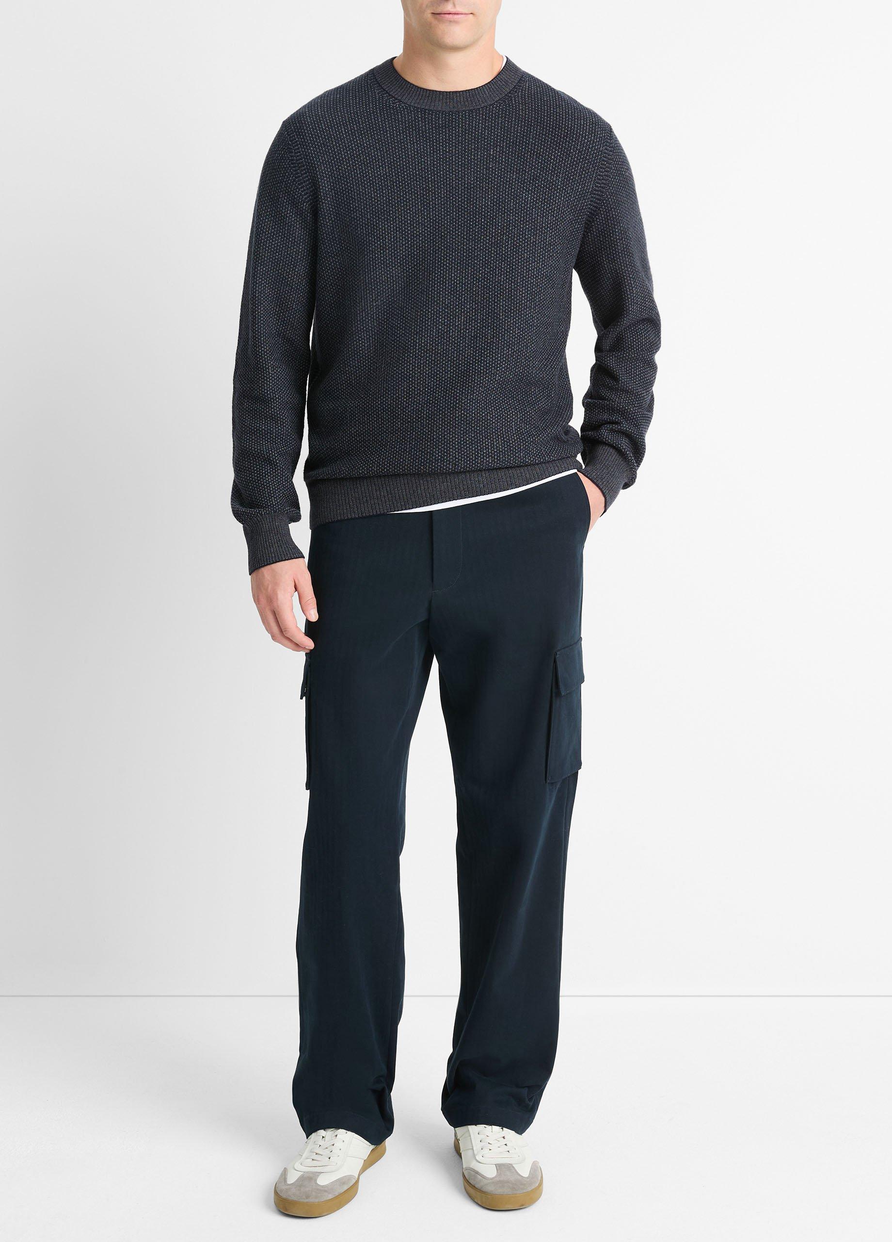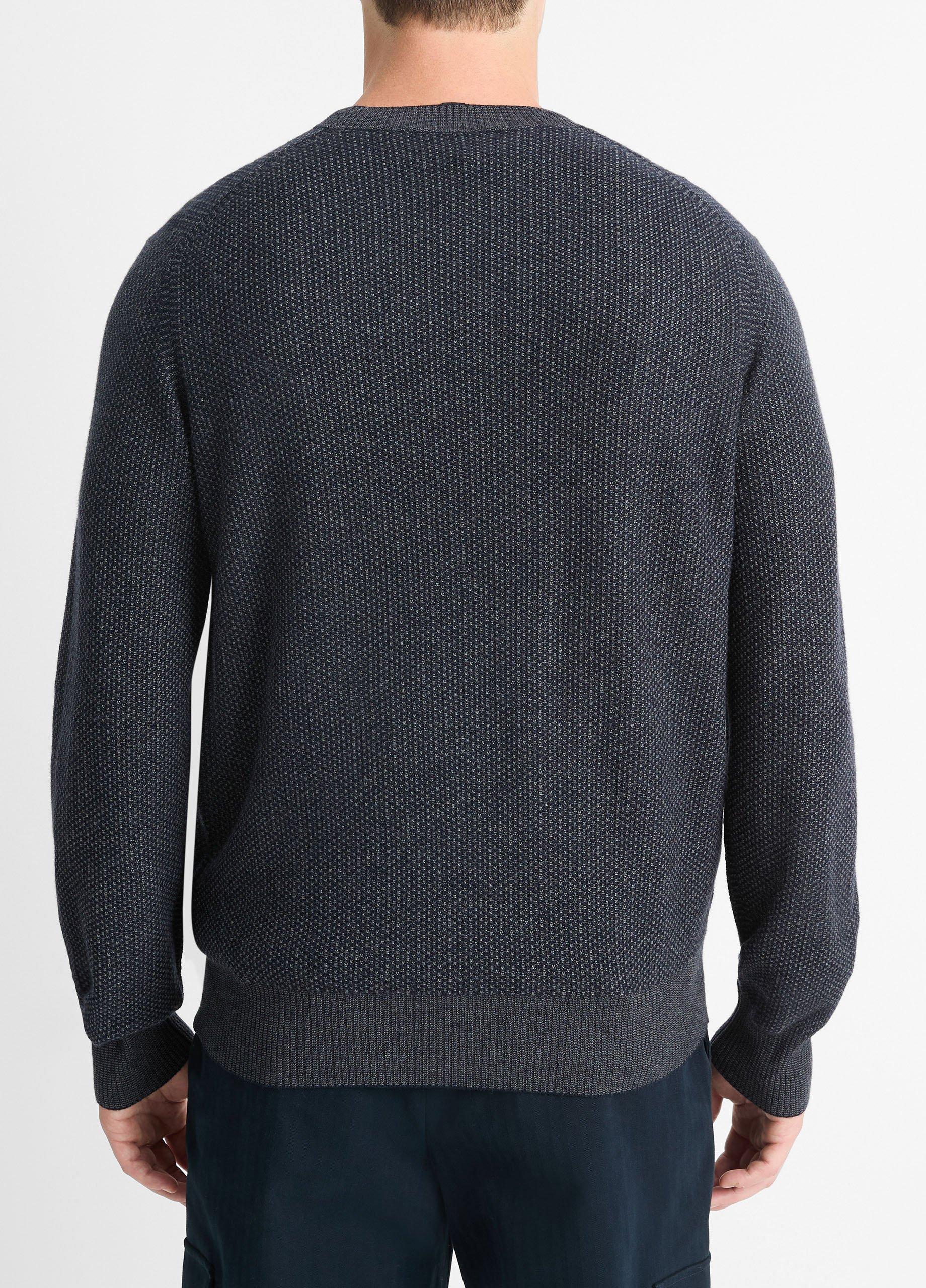 Vince Men’s Geo-jacquard Wool-blend Crew Neck Sweater | Coastal Blue & Medium Grey