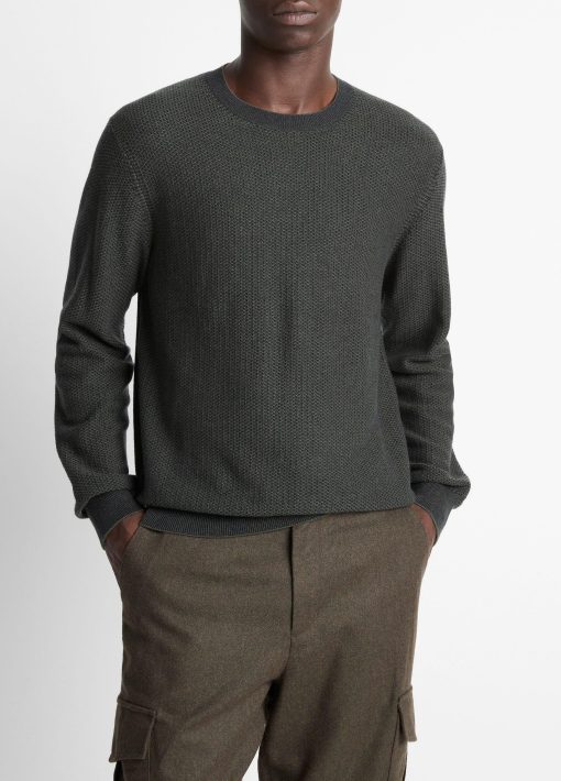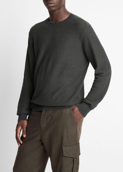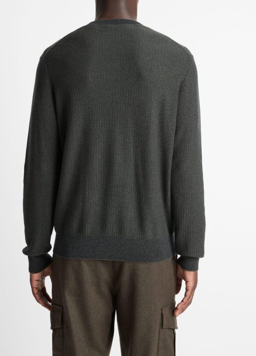 Soft and textural, this classic crew neck sweater is jacquard-knit in a geometric pattern using a luxe blend of wool, cotton and cashmere.