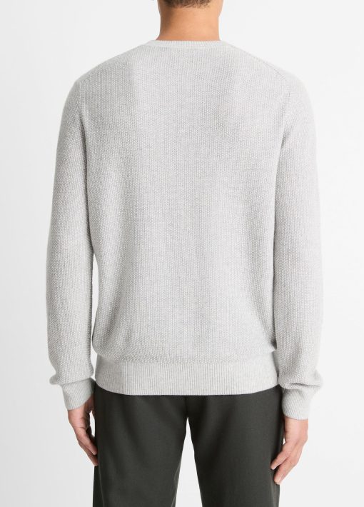 Vince Men’s Geo-jacquard Wool-blend Crew Neck Sweater | Heather Grey & Classic Cream