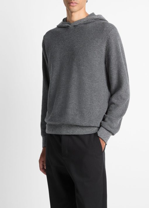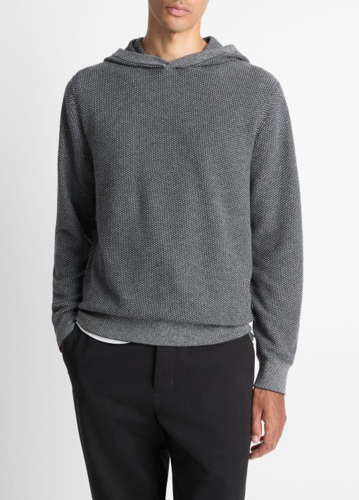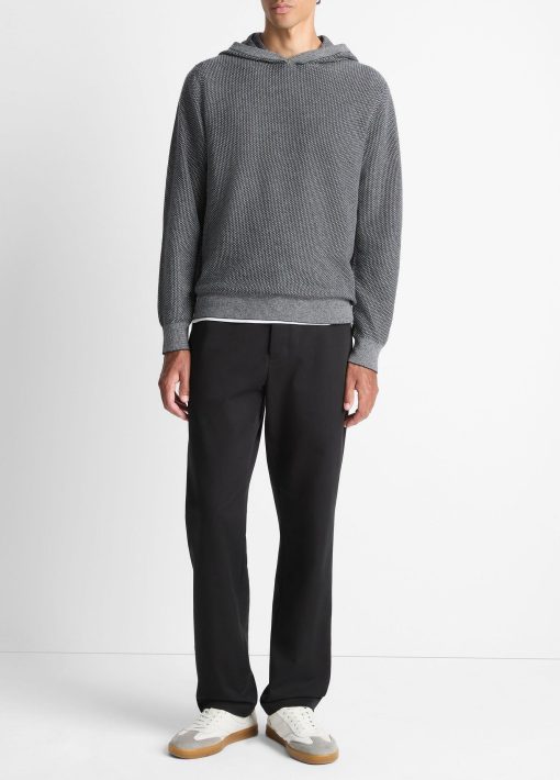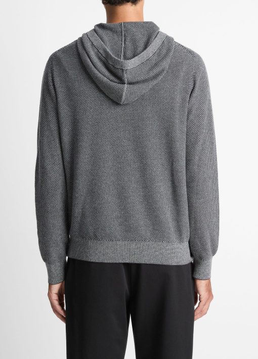 Vince Men’s Geo-jacquard Wool-blend Sweater Hoodie | Heather Black & Heather Grey