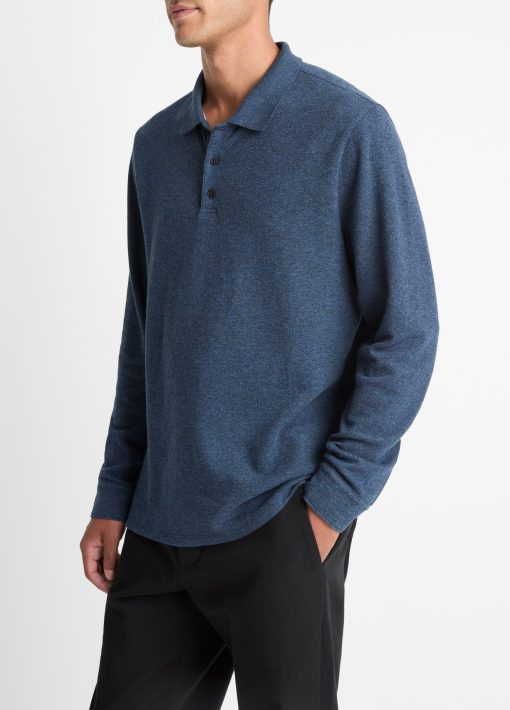 Crafted from a double-faced cotton blend, our long-sleeve polo shirt is the quintessential transitional layer, both soft and substantial. A heathered finish lends this timeless silhouette its dash of definition.
