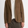 Crafted from an Italian splittable virgin wool blend that boasts lightweight warmth and a clean finish, our single-breasted blazer is tailored with peak lapels and oversized patch pockets for a silhouette that neatly straddles the line between polished and casual.