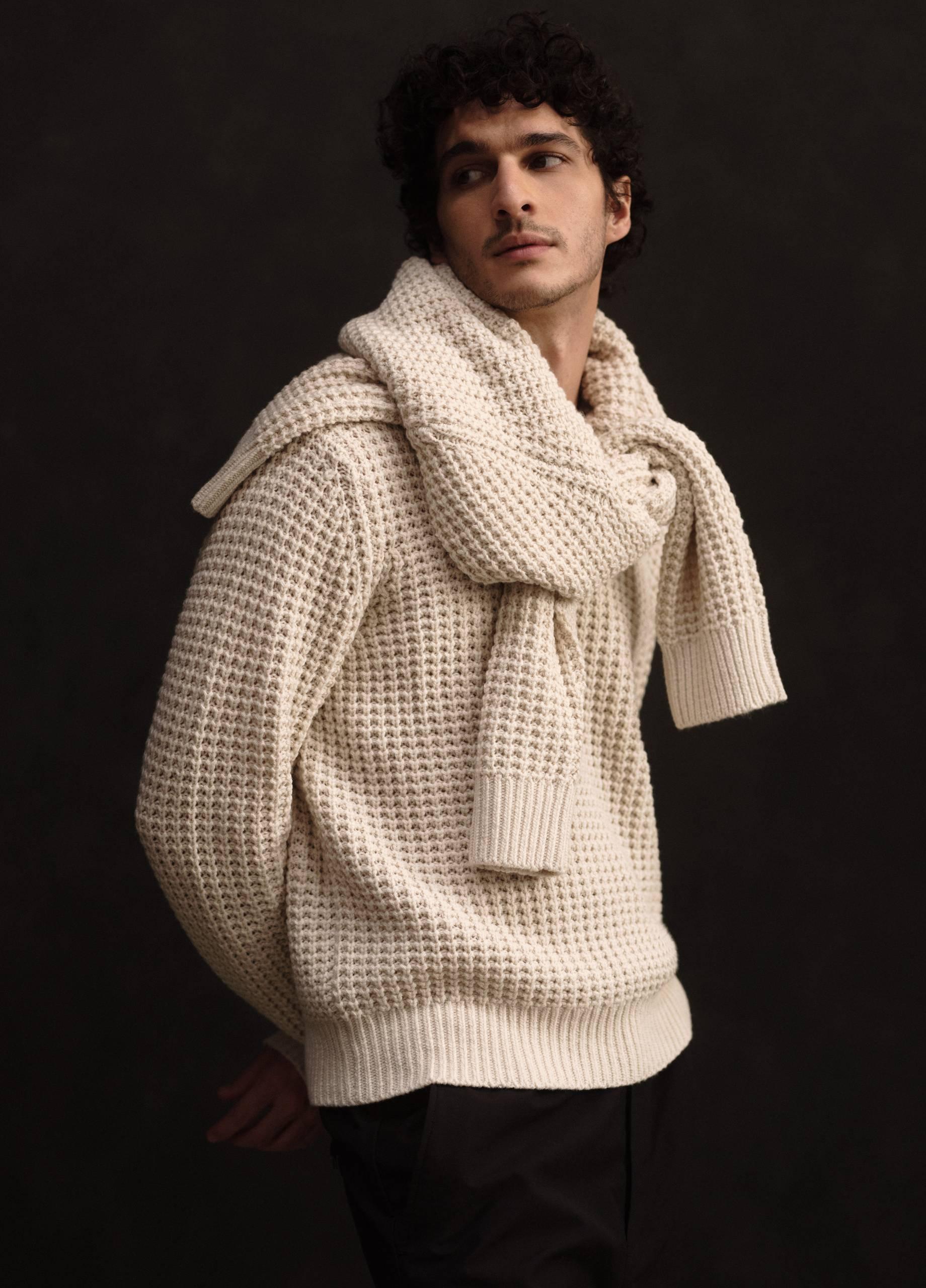 An easy, timeless essential with a twist: our classic, fully fashioned crew neck is elevated with a textural, chunky waffle-stitch finish.