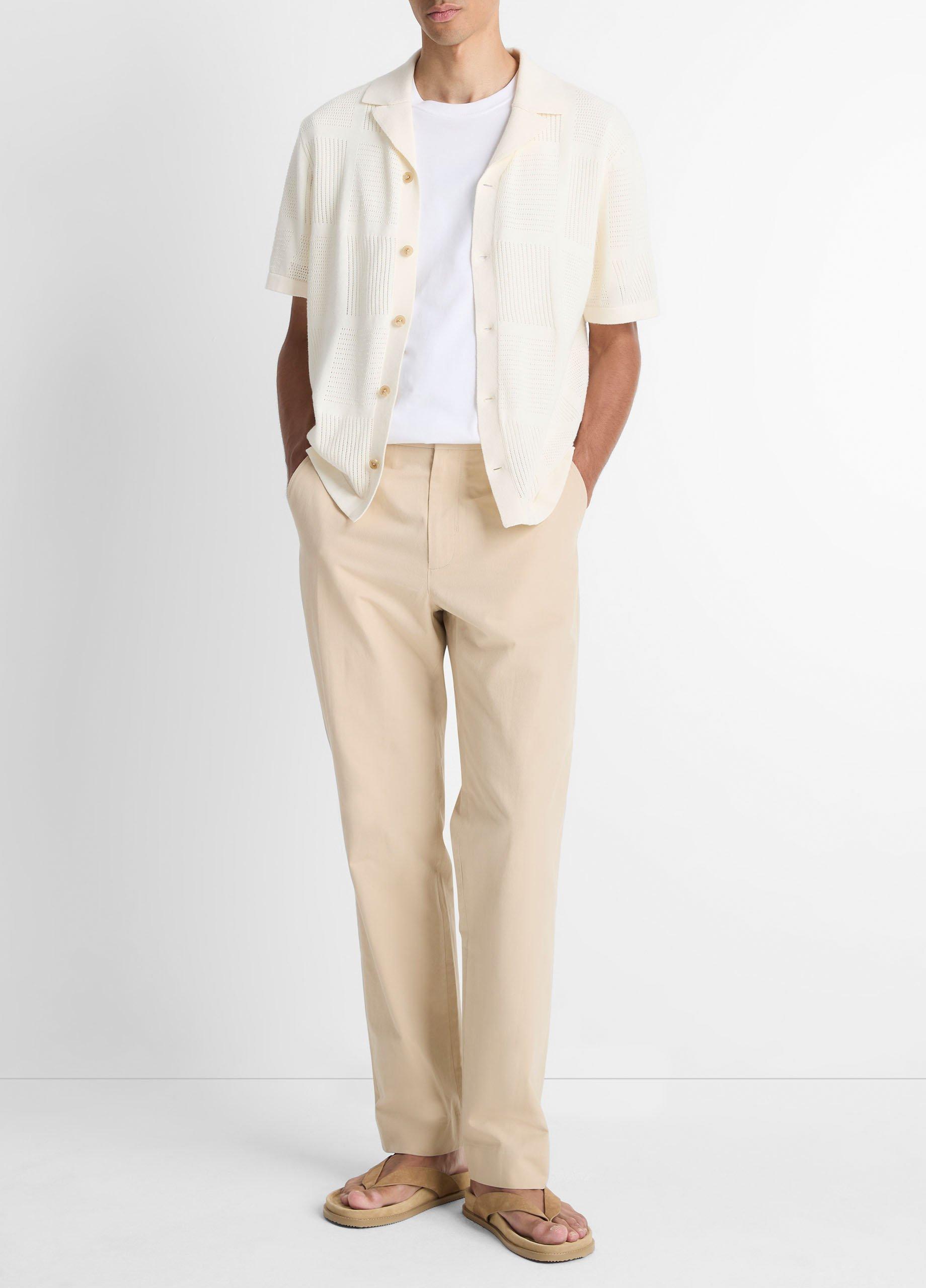 An elevated take on the classic cabana shirt, our version is compact-knit from lightweight cotton and finished with patchwork pointelle stitching throughout.