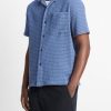 A checked pattern and softly crinkled finish lend this classic button-up its rich texture and dimension. We crafted it from Italian cotton for a light, breathable feel on hot days.