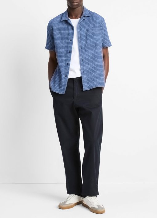 A checked pattern and softly crinkled finish lend this classic button-up its rich texture and dimension. We crafted it from Italian cotton for a light, breathable feel on hot days.