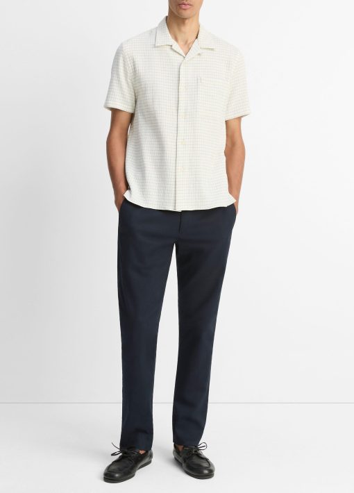 A checked pattern and softly crinkled finish lend this classic button-up its rich texture and dimension. We crafted it from Italian cotton for a light, breathable feel on hot days.