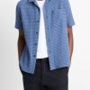 Vince Men’s Seersucker-knit Cotton Cabana Shirt | Coastal Blue