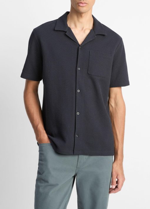 Vince Men’s Seersucker-knit Cotton Cabana Shirt | Coastal Blue