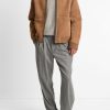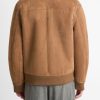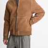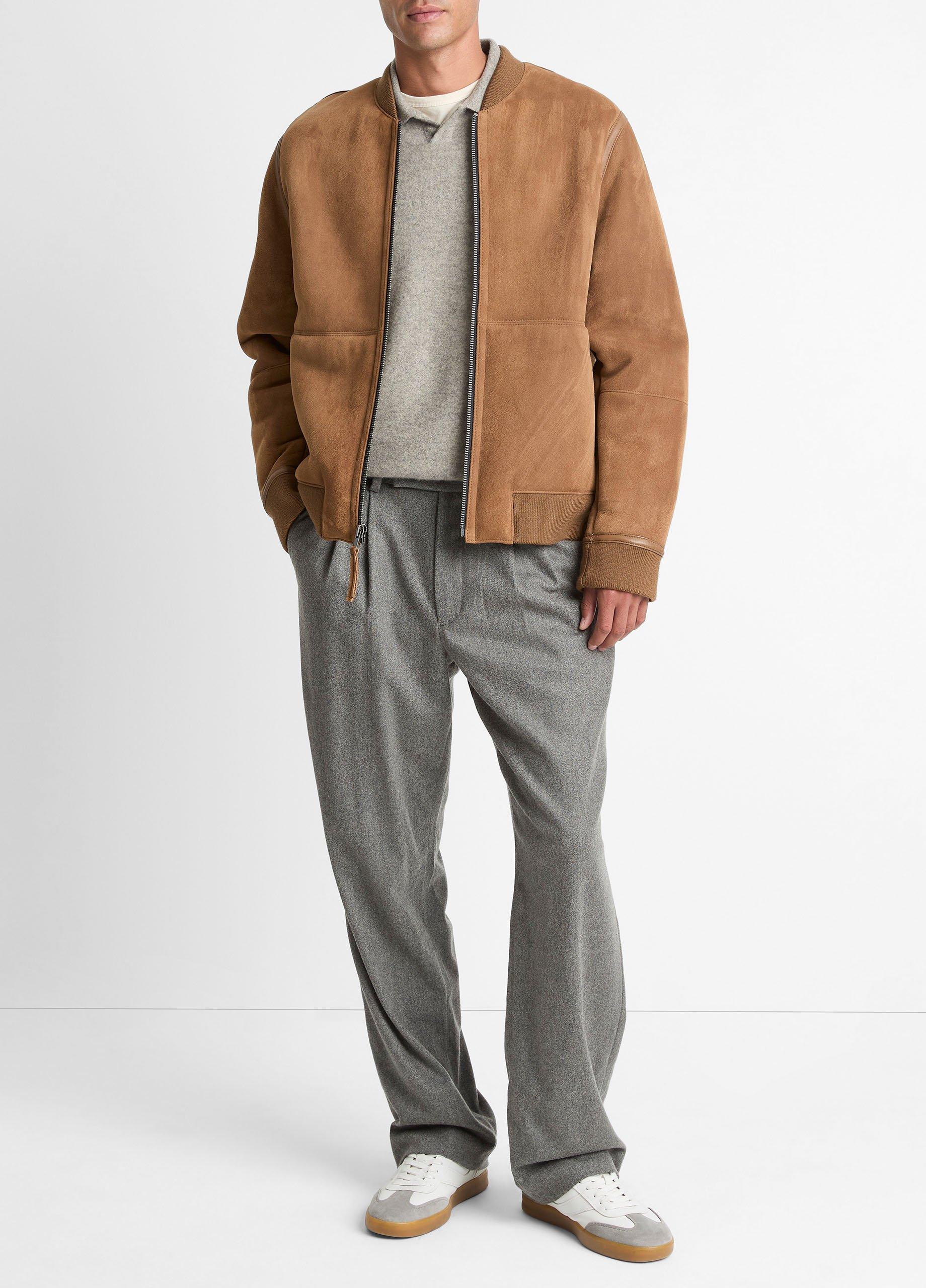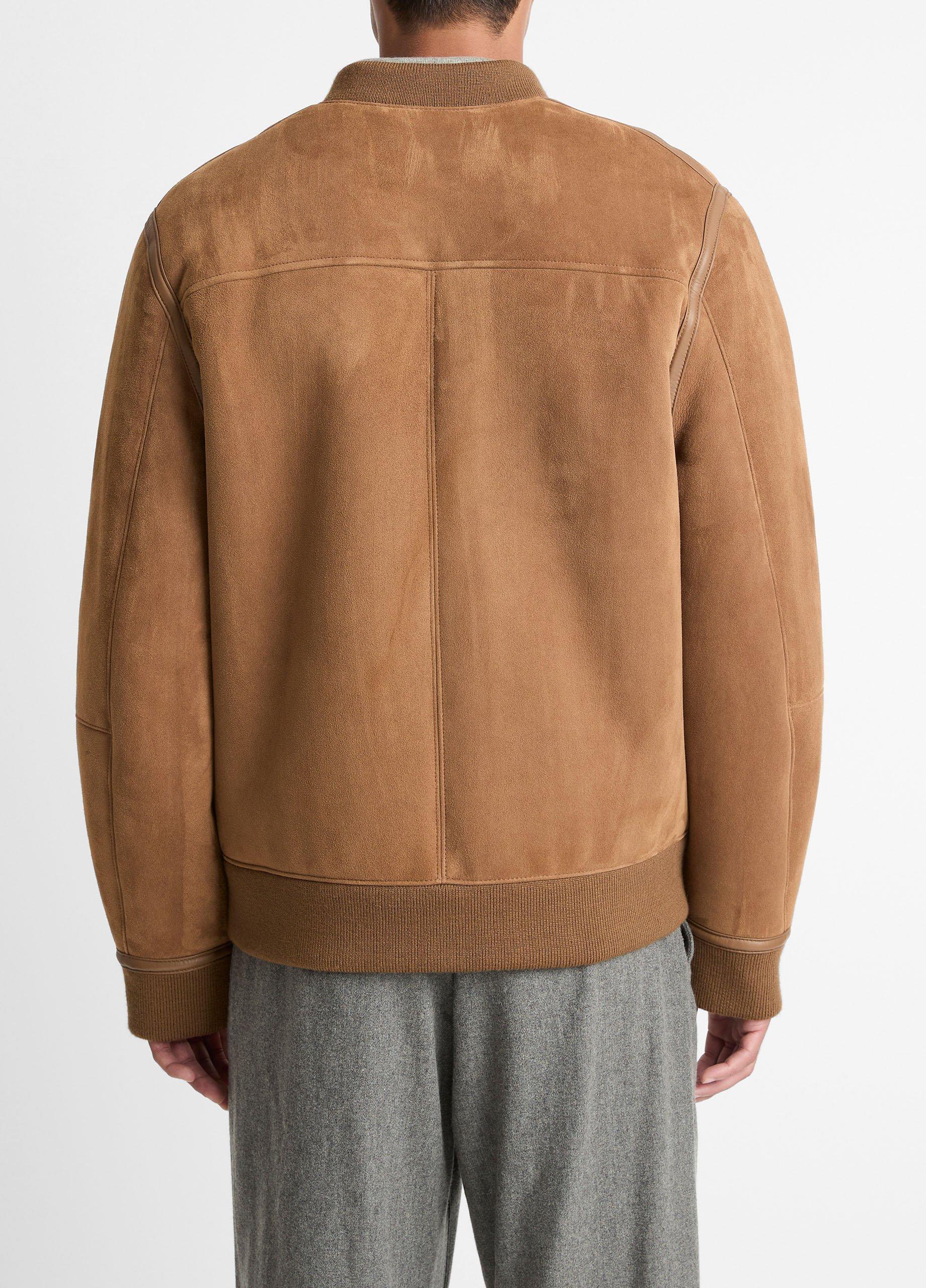 This bomber jacket takes warmth to new altitudes with its buttery suede face and 100% lamb shearling interior. Pay close attention also to its rib-knit cuffs and trims, which lend this timeless layer its dash of definition.