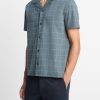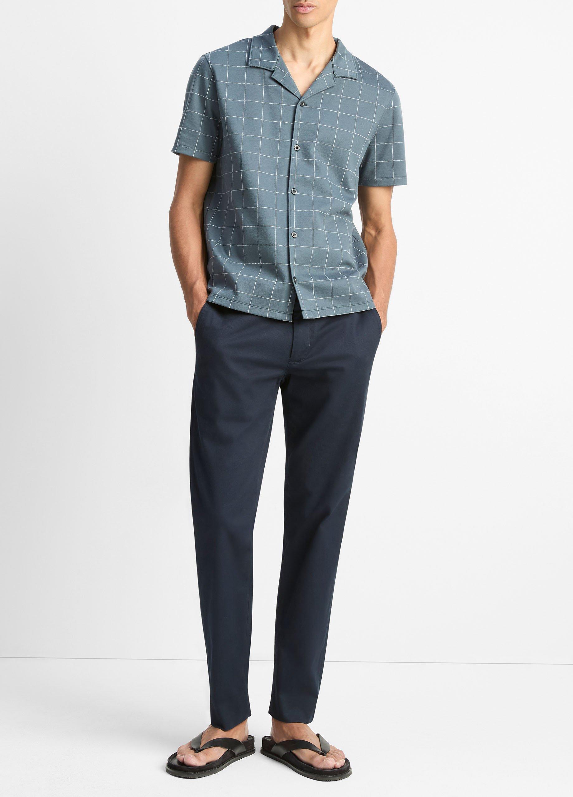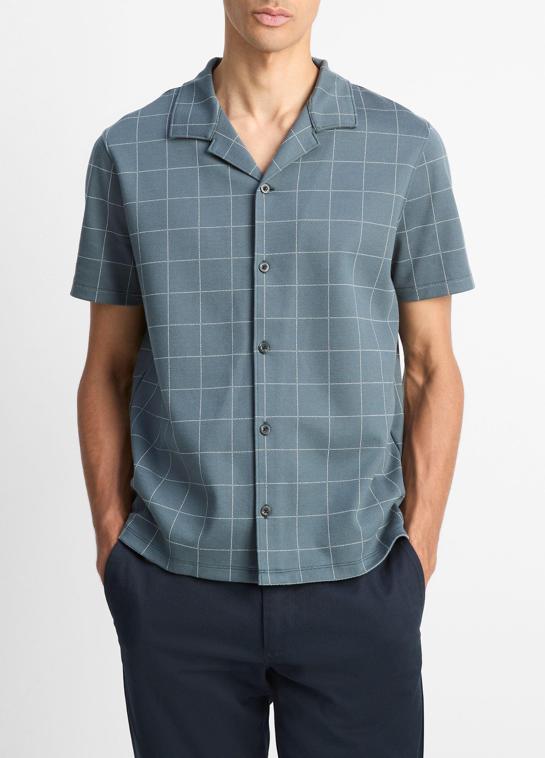 Our latest iteration on the classic cabana shirt is crafted from a lightweight cotton-blend twill and stitched with a refined windowpane jacquard motif.