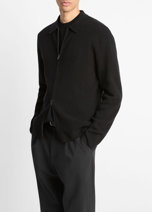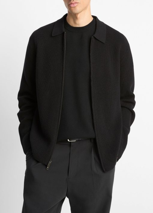 A sweater meets shirt jacket, this two-way zip-front layer is crafted from a sumptuous blend of wool, cotton and cashmere in a classic shaker stitch.