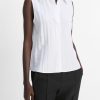A blend of environmentally responsible TENCELâ„¢ lyocell, nylon and wool gives our sleeveless button-up its soft drape and textured feel. We’ve finished it with a hidden placket for a clean look that’s endless in versatility.