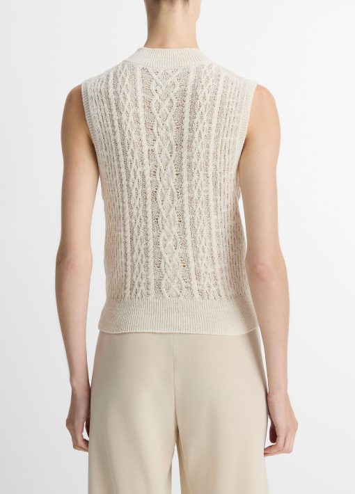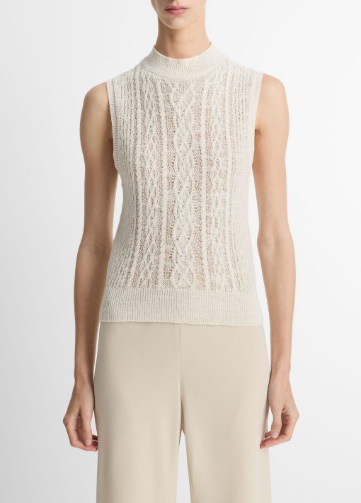 Vince Women’s Cable Cotton-blend Double-layer Shell | Off White & Gold Cliff