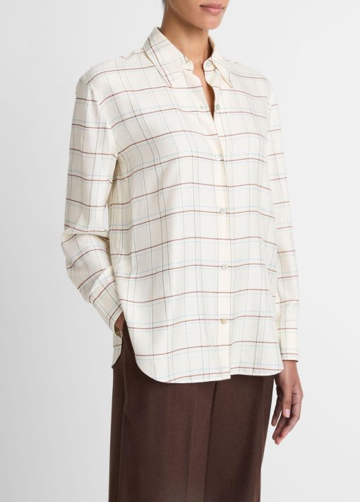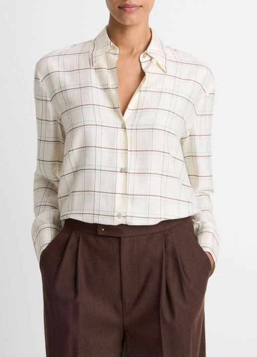 Our latest button-up is crafted from a blend featuring silk, which gives it a light, airy feel ideal for the transition from summer to fall. As for the check? It harmonizes the colors from our palette this season.