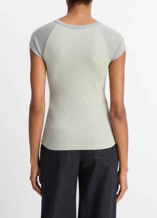 Vince Women’s Colorblock Pima Cotton Raglan T-shirt | Sea Fog Combo