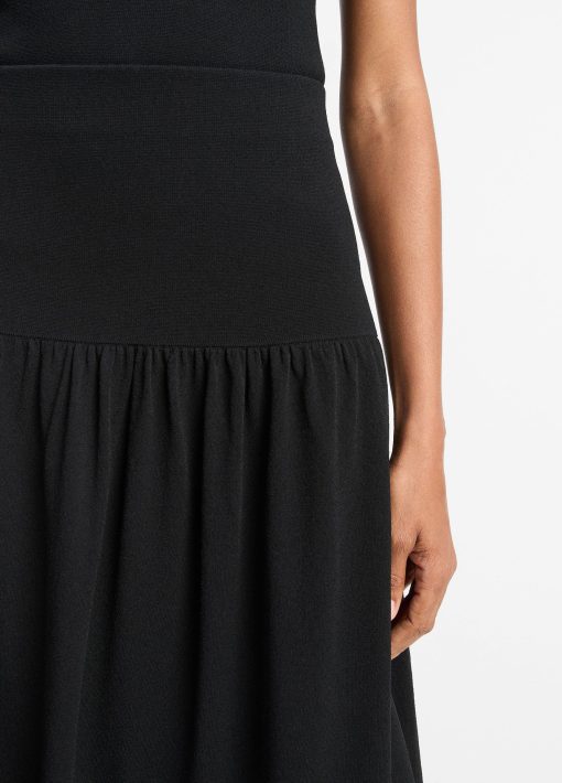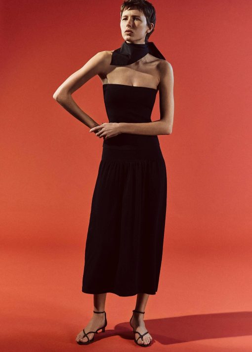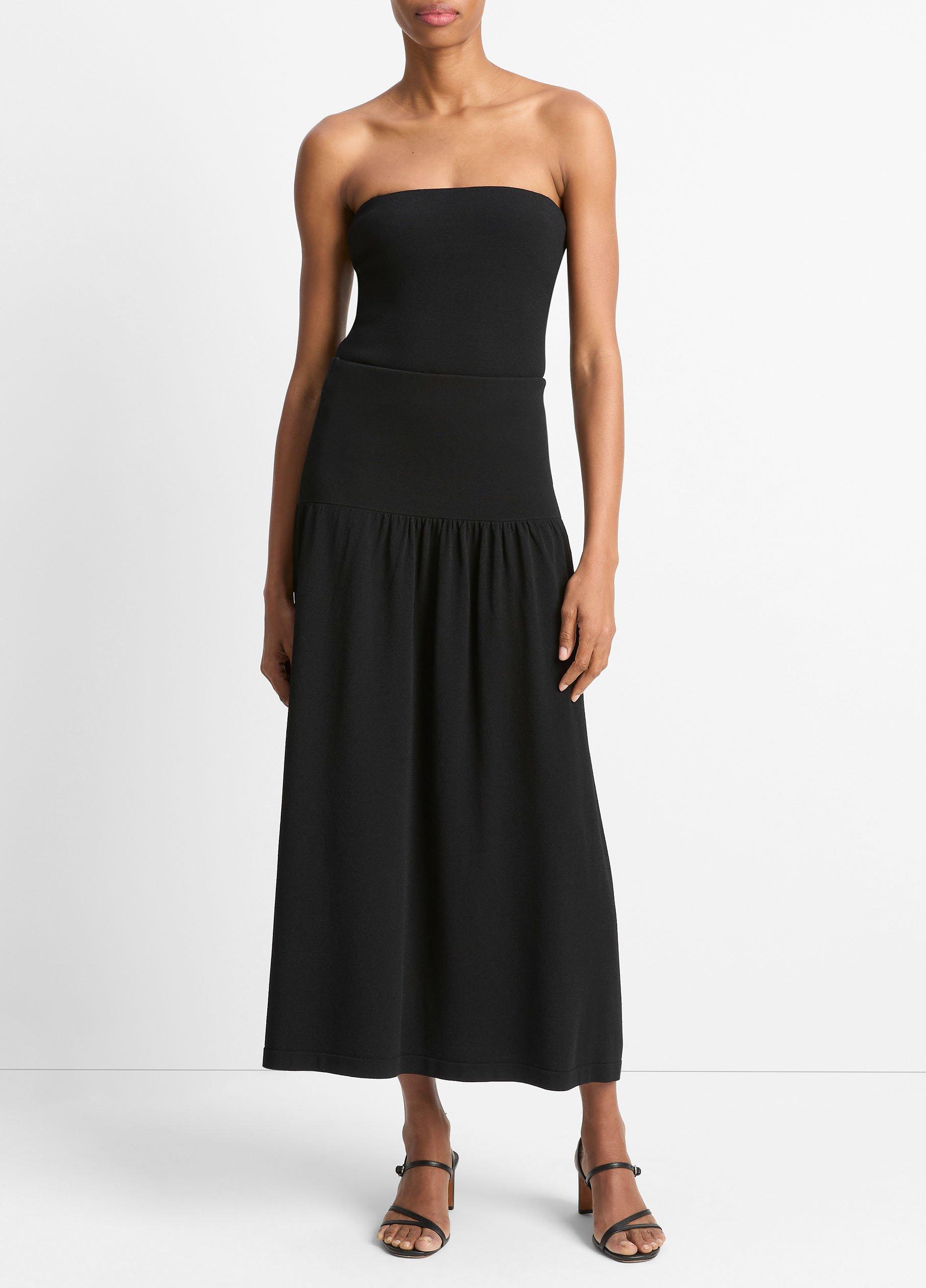 What we love about a drop waist is the natural lengthening effect it lends the torso. Another thing that makes this skirt special is its Italian viscose blend, which has been knit in a compact milano stitch; this technique ensures resistance to stretching and shrinking, so it’ll retain its shape over time. We made a matching strapless top, but the versatile silhouette pairs beautifully with blouses and tees alike.