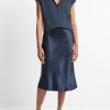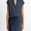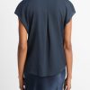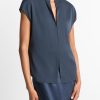 Vince Women’s Contrast-placket Stretch-silk Cap-sleeve Blouse | Coastal Blue & Black