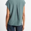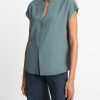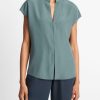 Vince Women’s Contrast-placket Stretch-silk Cap-sleeve Blouse | Teal Stone & Clay Sage