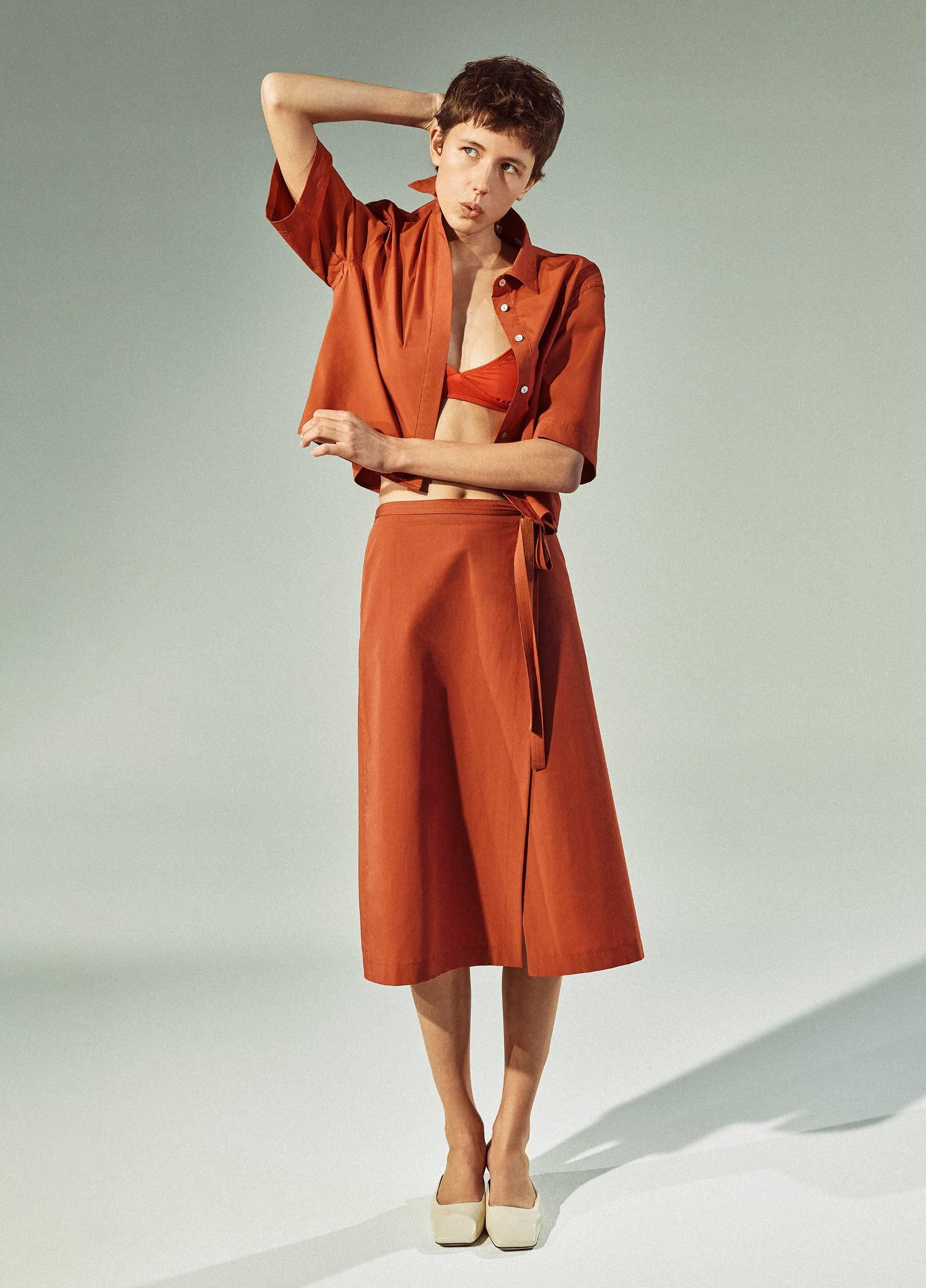Refreshing reds pepper our color palette this season. This wrap skirt is cut with a straight silhouette from a soft, breathable blend of cotton and nylon.