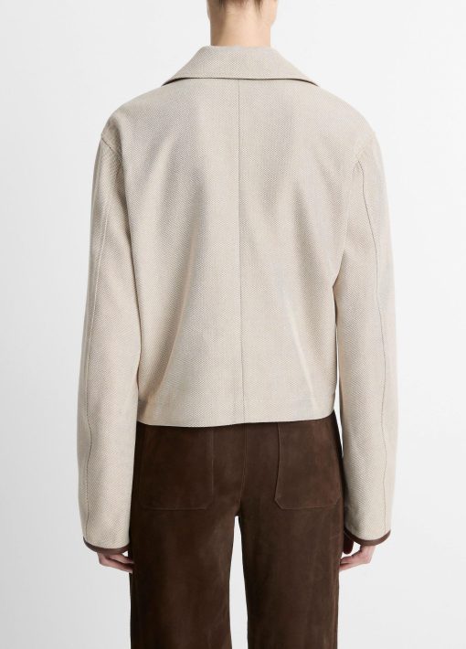 Nods to vintage car interiors pepper our lineup this fall. Spy them in the faux-leather trim and the cropped, driver jacket-inspired silhouette of our latest layer. We crafted it from checked two-tone cotton tweed and left the body unlined to give it an ultra-lightweight feel ideal for the shift into cooler fall days.