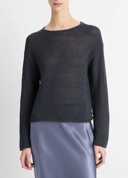Designed with drop shoulders for a relaxed fit, this everyday layer is free of trims for the cleanest possible finish. What distinguishes this sweater from others is the Italian cotton-blend yarn, which gives it an easy drape and a slightly waxy, silky feel on the skin.