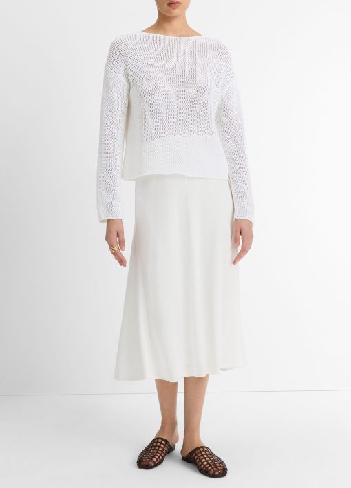 Designed with drop shoulders for a relaxed fit, this everyday layer is free of trims for the cleanest possible finish. What distinguishes this sweater from others is the Italian cotton-blend yarn, which gives it an easy drape and a slightly waxy, silky feel on the skin.