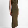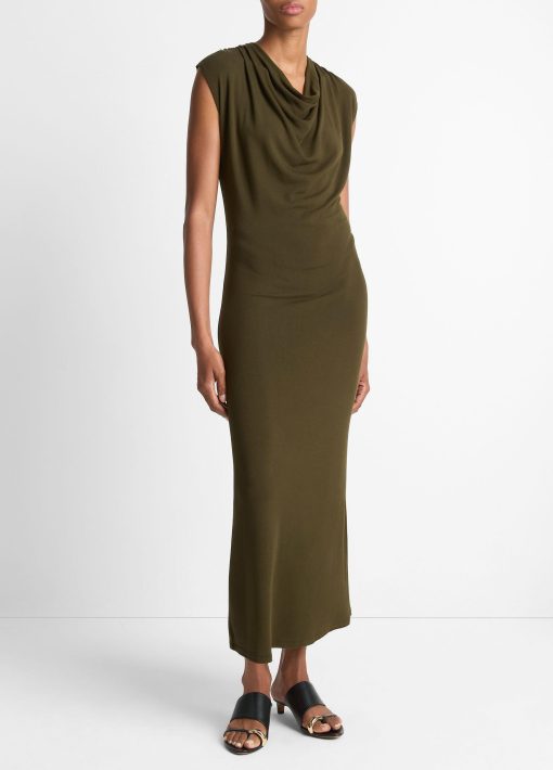Our midi dress is defined by a softly draped cowl neck and column silhouette, cut to gently skim the form just right; not too tight, not too loose. It’s made from a sumptuous stretch-jersey that feels as soft as a sweater on the skin.