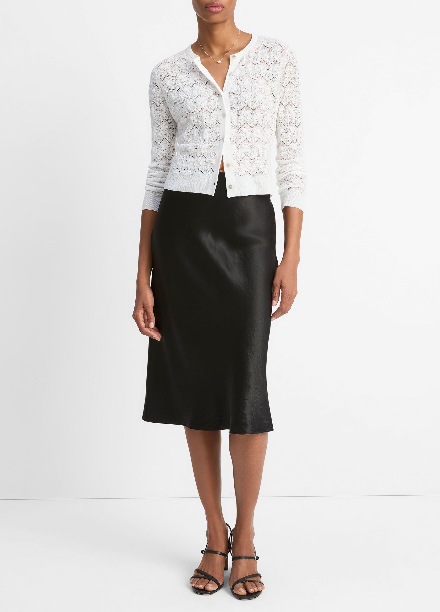 This richly textured cardigan is made from a refined Japanese cotton, which we’ve knit in an open, pointelle-stitched pattern to mimic the delicate appearance of lace. It has an ultra-lightweight, airy feel ideal for hot summer days.