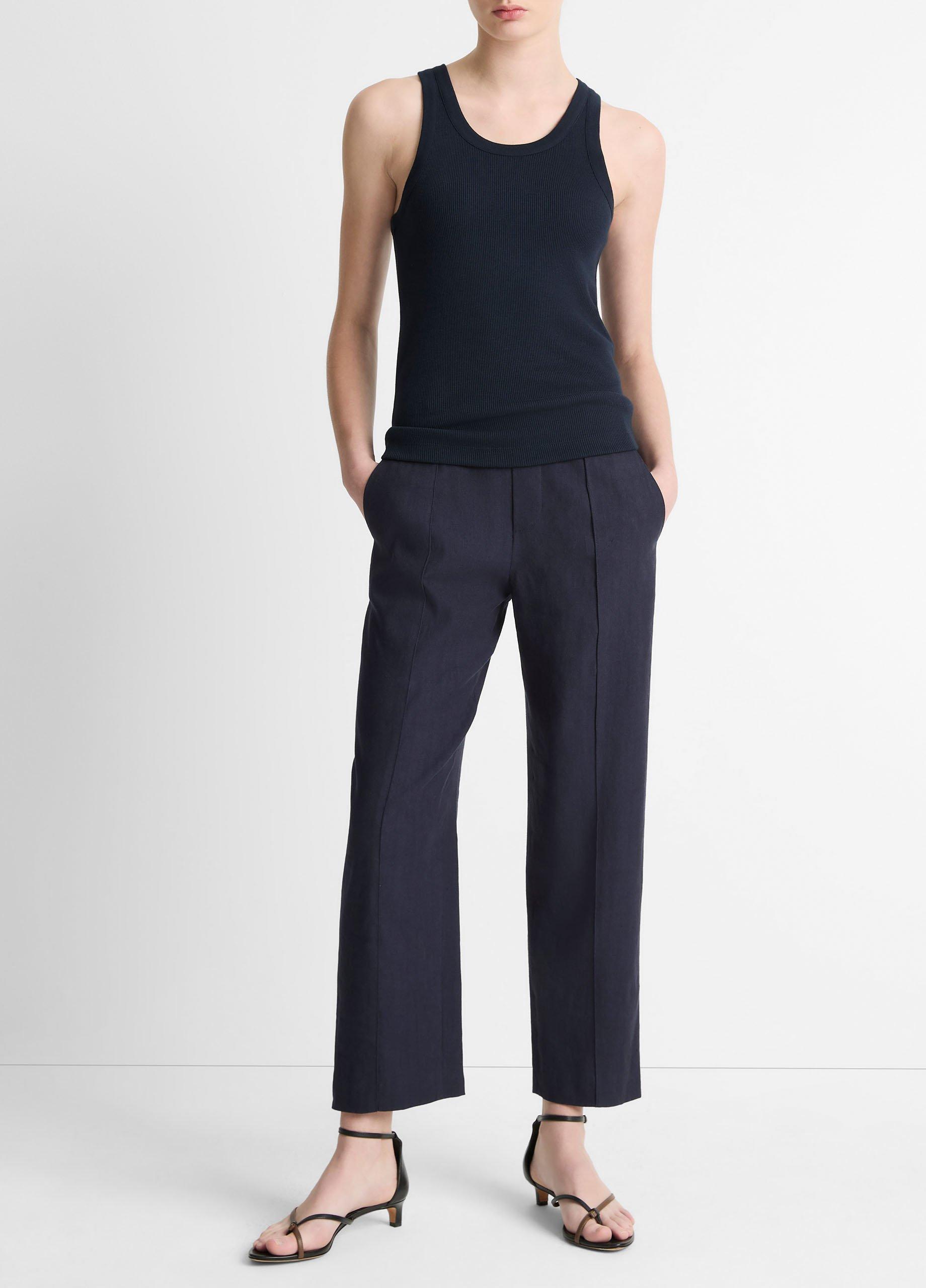 The warm-weather update to our best-selling pull-on pant, our latest pair is crafted from a lightweight, breathable linen blend. With the appearance of a trouser and discreet comfort from an elasticized back waist, this easy silhouette will readily take on the lion’s share of the work in your wardrobe.