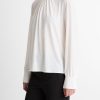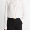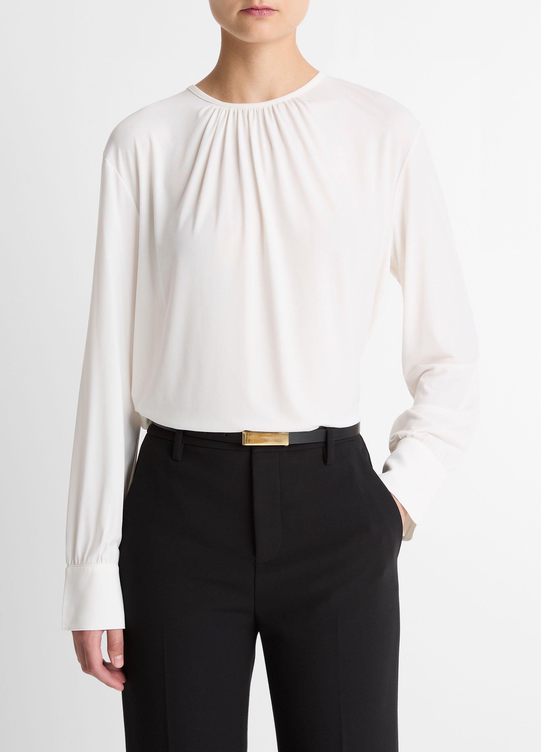 Fluid matte jersey lends this top a dressier appeal, instantly elevating trousers and denim alike. Endlessly versatile, it’s distinguished by soft gathering at the collar.