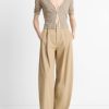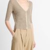Vince Women’s Micro-stripe Cashmere-silk Cardigan | Off White & Tapenade