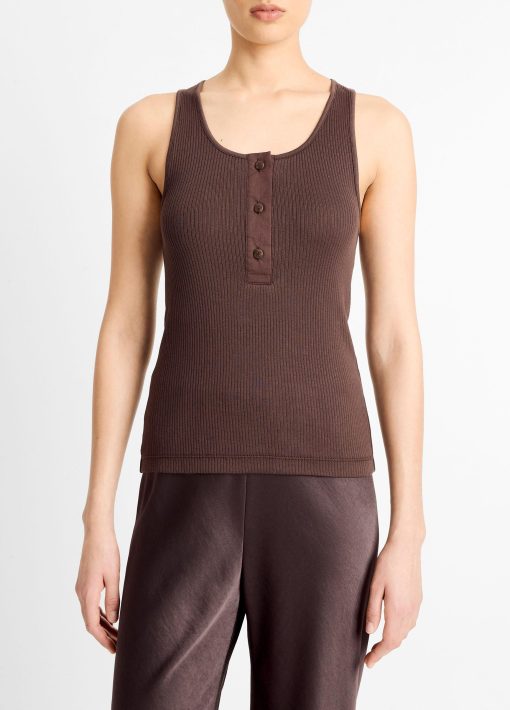 Crafted from a sumptuous, ribbed Pima cotton, our scoop-neck tank takes cues from the timeless henley with a poplin three-button placket.