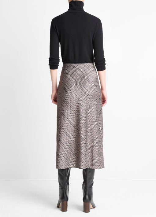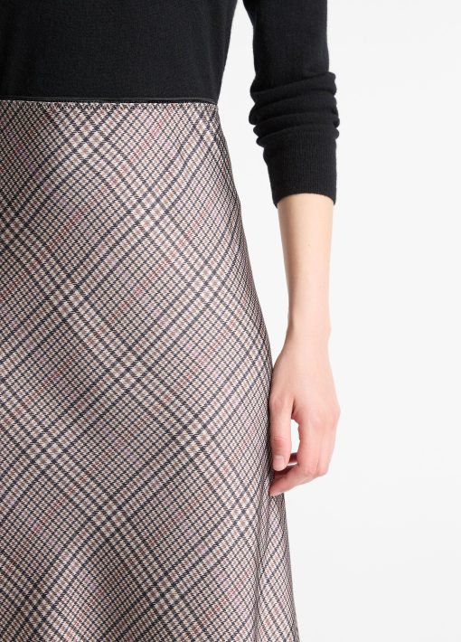 A look back at vintage cars inspired the patterns and details throughout our Fall Collection. The pressed plaid on this slip skirt is our subtle nod to those sporty interiors. This is balanced with softer touches true to the silhouette’s feminine roots, from the lustrous satin fabric to the lingerie-inspired trim at the waistband.