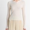 Vince Women’s Ribbed Cashmere-silk Henley Sweater | Off White