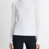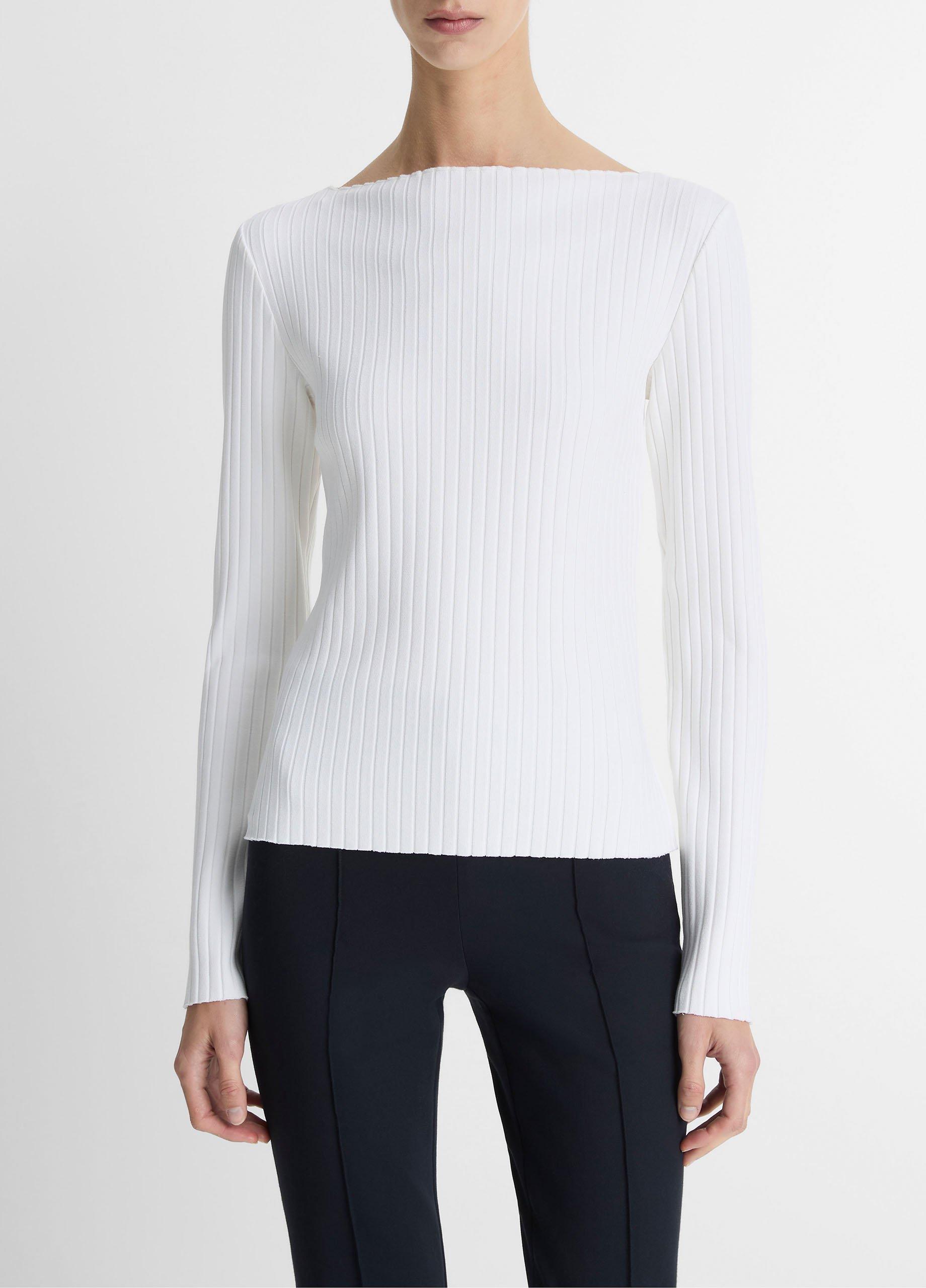 Vince Women’s Ribbed Cotton-blend Slash-neck Long-sleeve Top | Off White