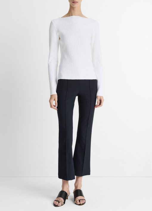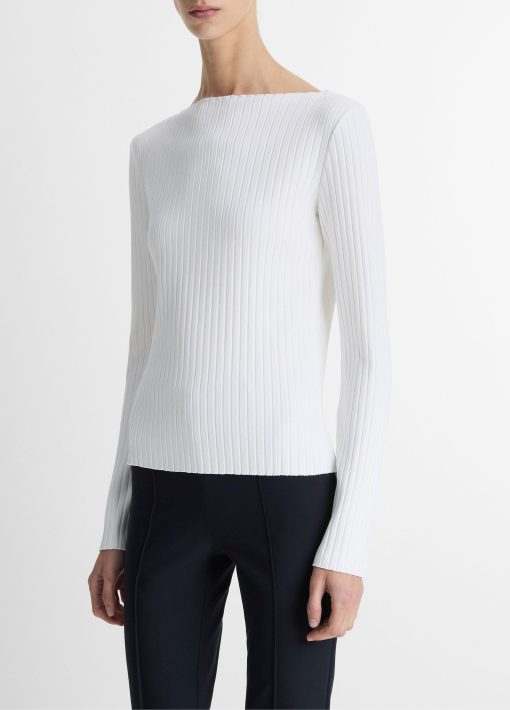 Vince Women’s Ribbed Cotton-blend Slash-neck Long-sleeve Top | Off White