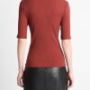 Vince Women’s Ribbed Cotton Elbow-sleeve Turtleneck Top | Siena