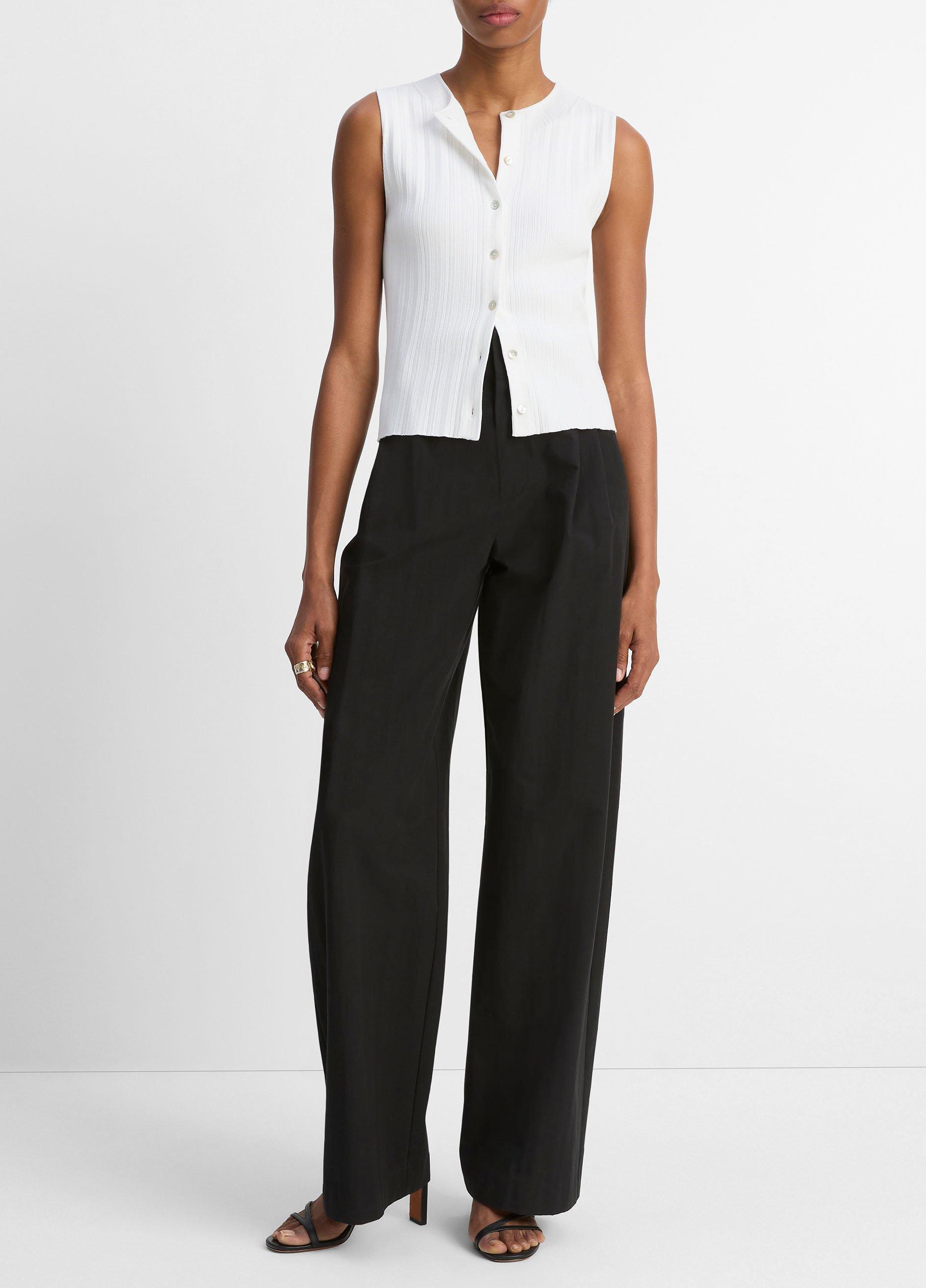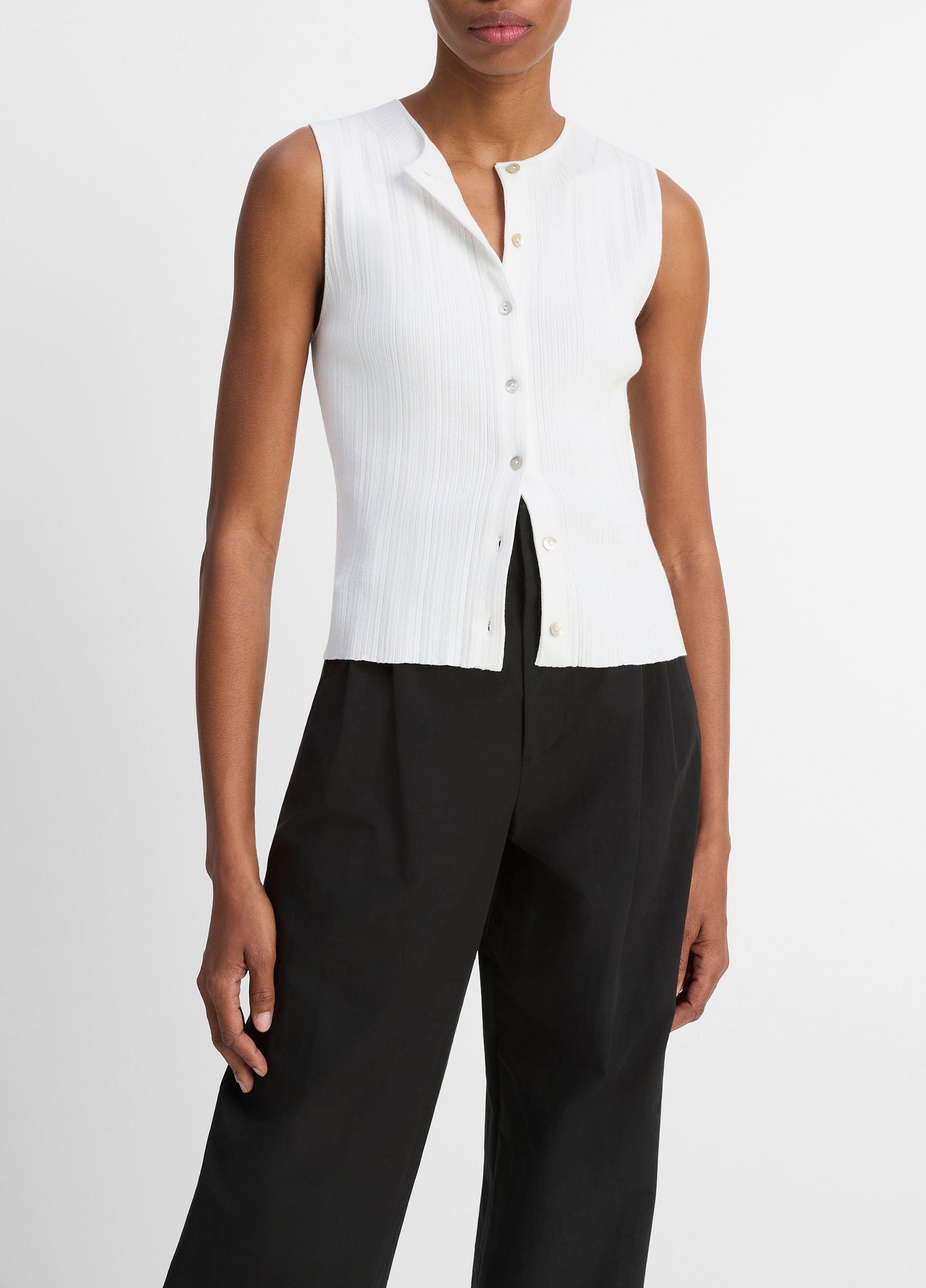 Vince Women’s Ribbed Italian Cotton-blend Button-front Sweater Shell | Off White