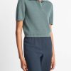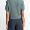 A blend of silk and cotton achieves the perfect balance of soft structure and fluid drape in our rib-knit polo sweater. It’s shaped with a slightly cropped, boxy silhouette ideal for pairing with denim and trousers.