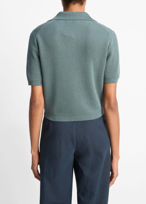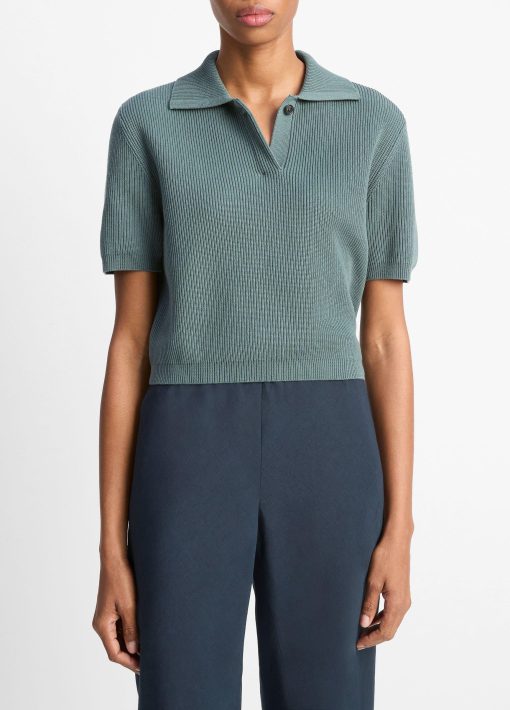 A blend of silk and cotton achieves the perfect balance of soft structure and fluid drape in our rib-knit polo sweater. It’s shaped with a slightly cropped, boxy silhouette ideal for pairing with denim and trousers.