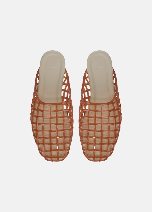 This nostalgic warm-weather sandal is modernized with a caged rubber design set on a soft leather footbed.