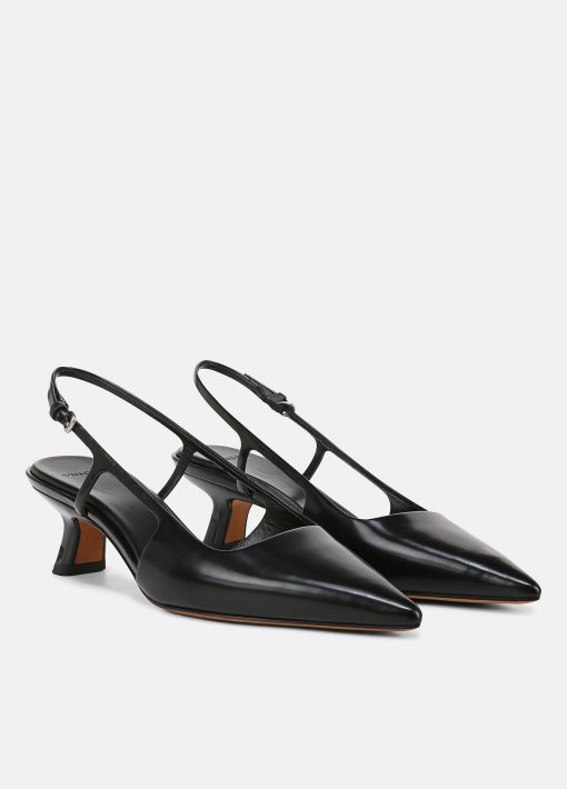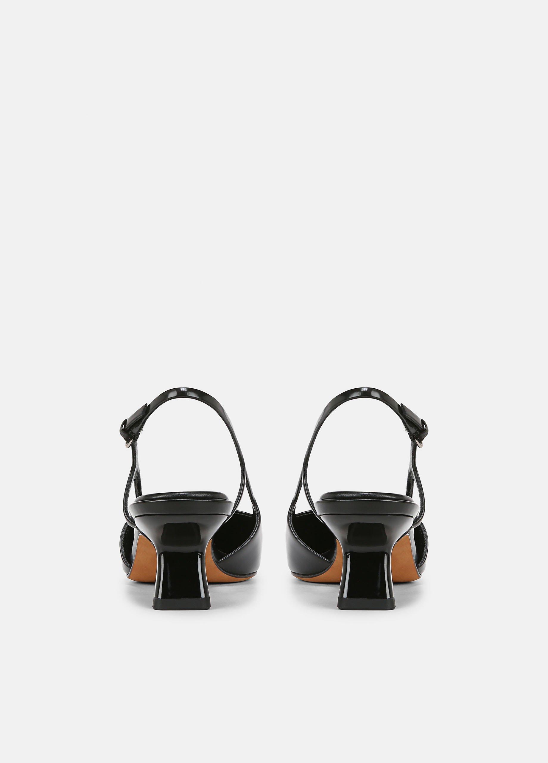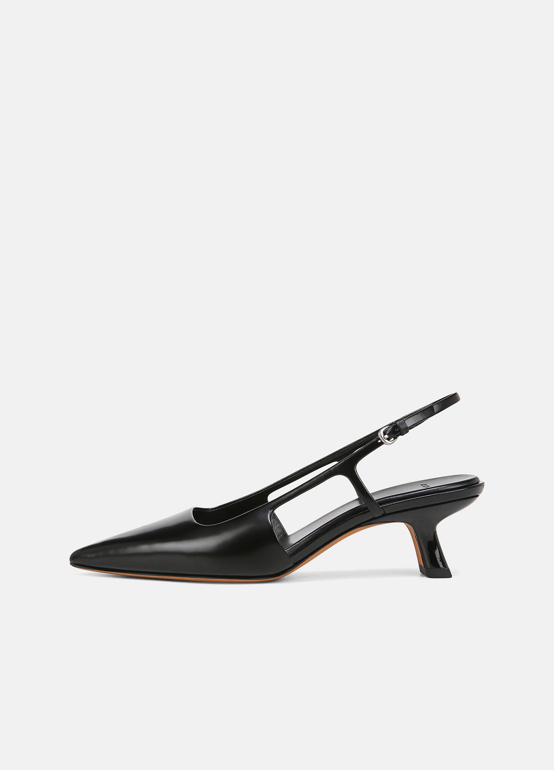 Our take on the slingback is rendered in buttery leather and set on a walkable low heel formed in a modern, sculptural shape. The insole is discreetly cushioned for refined comfort.